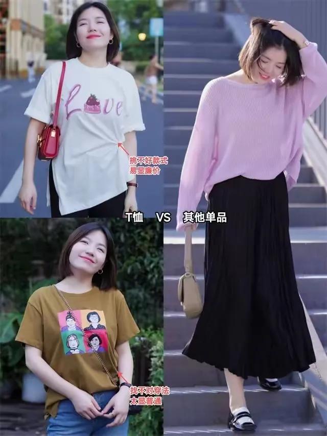 不管你穿什么样的衣服,衣服颜色搭配至关重要,有的时候衣服挂在衣架上,可能有印花,看起来挺好看,但是真的穿在身上之后,可能会显得廉价土气,咱们就看下面这两款印花,或者是卡通图案印花的短袖上衣,穿在身上之后就显得过于普通。
