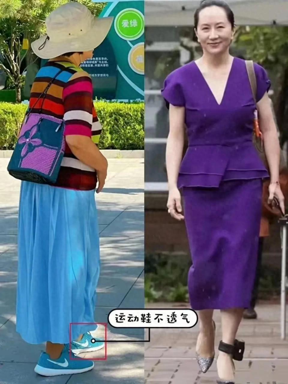 女人不管到什么年龄段,都是想让自己变得漂漂亮亮的,想要最快的改变自己的气质,那么就是选择适合自己的衣服款式,用衣服来弥补自身的短板,才能更好地提升气质,咱们就看下面这2套穿衣打扮就可以,有一个鲜明的对比,用花哨的条纹针织上衣搭配上浅蓝色的半身裙,脚上踩的一双运动鞋,这样的穿衣打扮就显老显俗气。